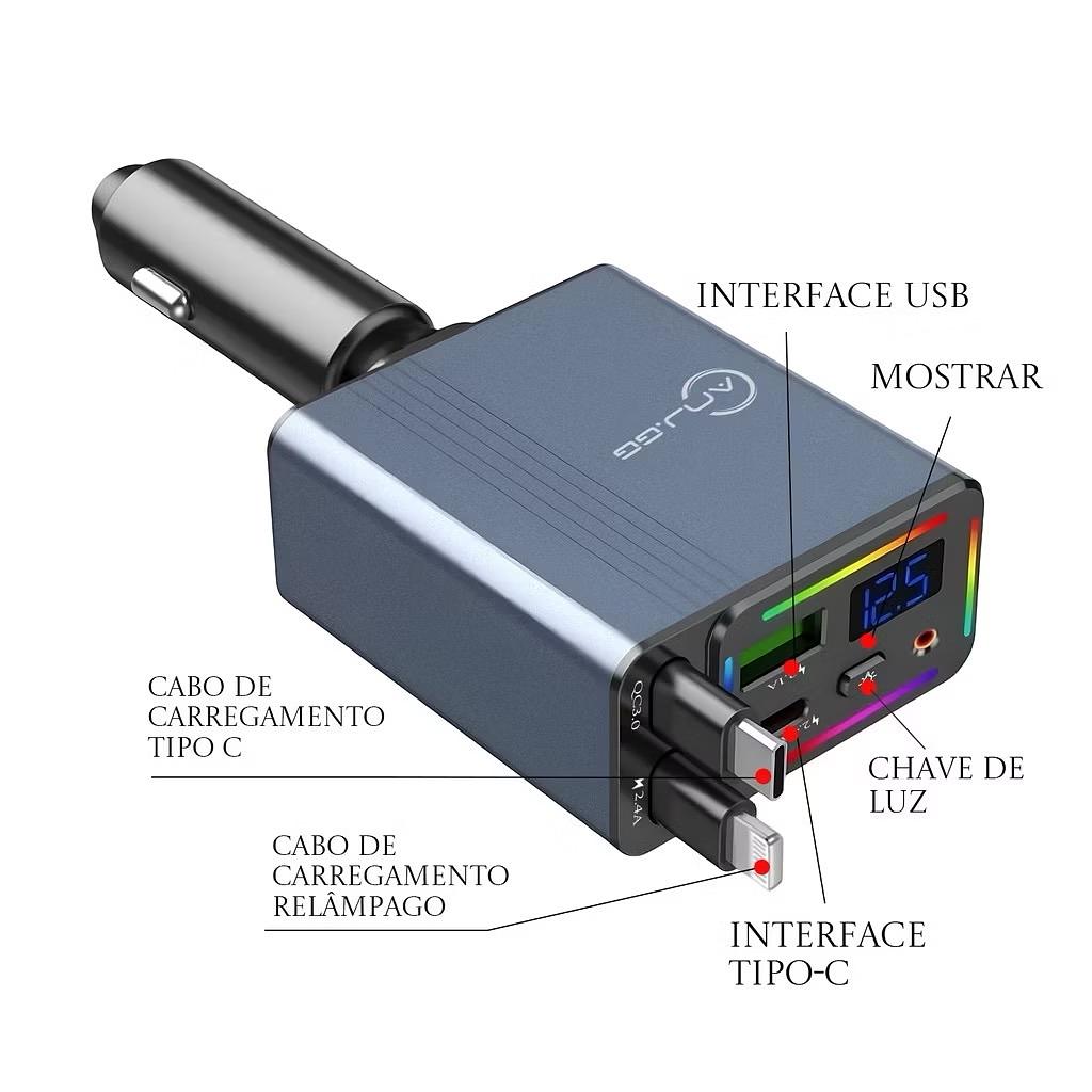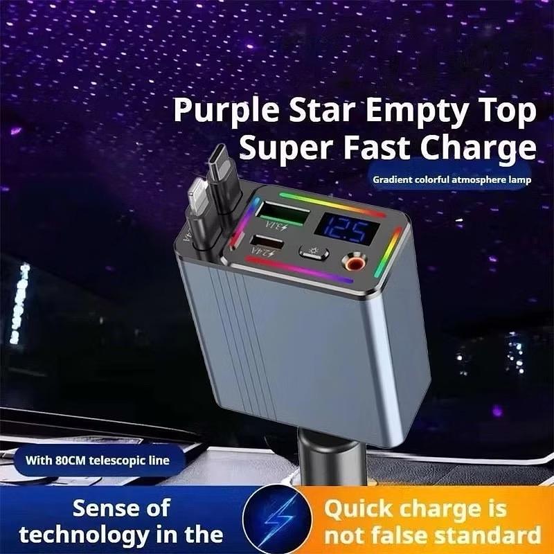 120W Carregador de carro retrátil Carregamento Rápido no Teto do Veículo para iPhone e Celulares Samsung
