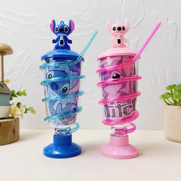 360ml Novo copo infantil STITCH com canudo e luz colorida em formato de desenho animado, portátil e com luz.