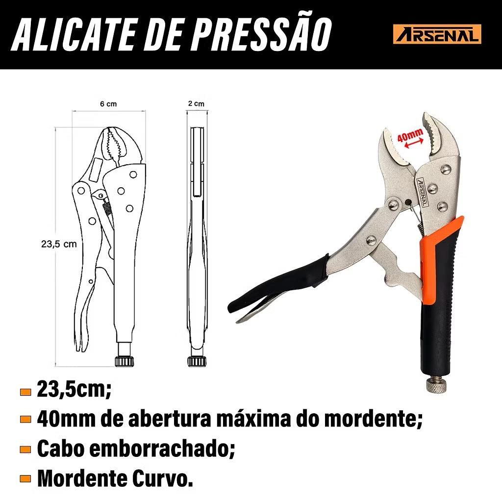 Alicate de pressão Emborrachado Mordente Curvo 10” Arsenal