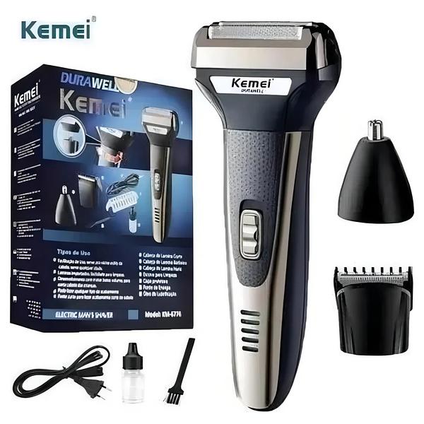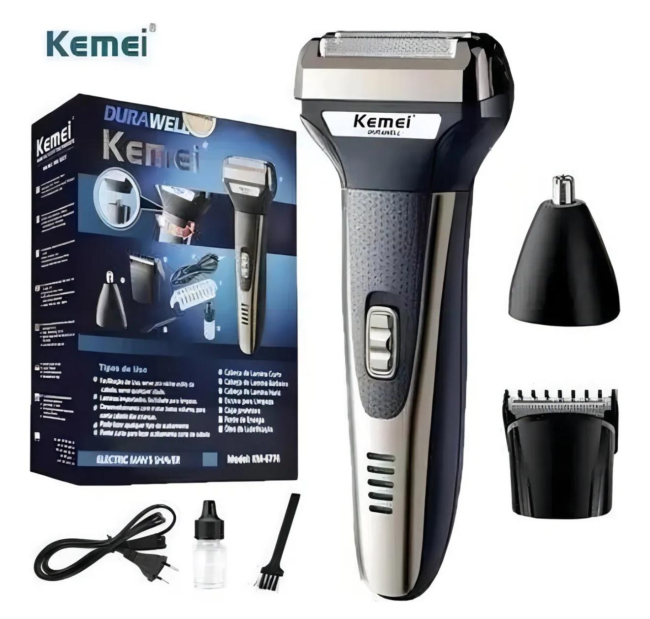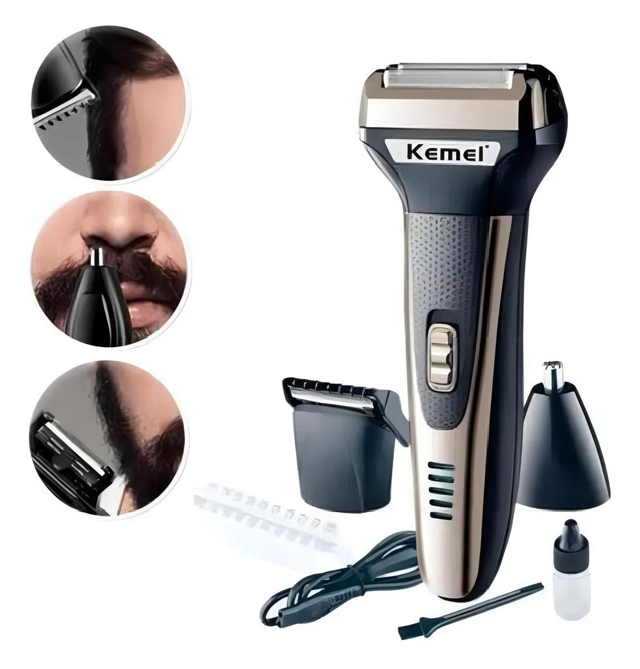 Barbeador Km 6776 Recarregável Multifuncional 3 Em 1