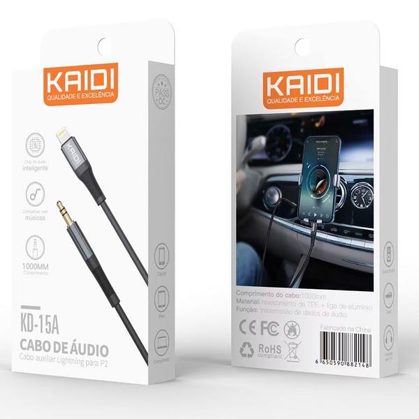 Cabo Áudio Auxiliar Lightning P2 Músicas Caixa Som Cel Carro-Kadi