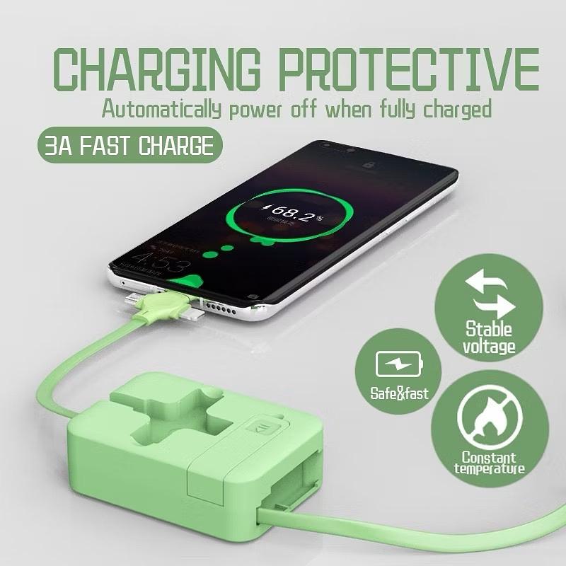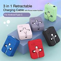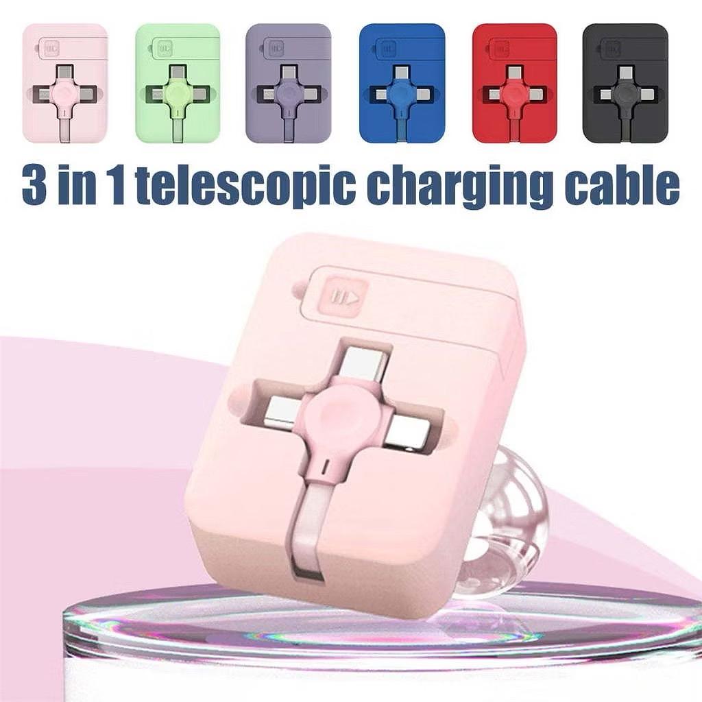 Cabo De Carregamento Retrátil Macaron 3 Em 1 Com Suporte Para Dados Rápido Android Type-c