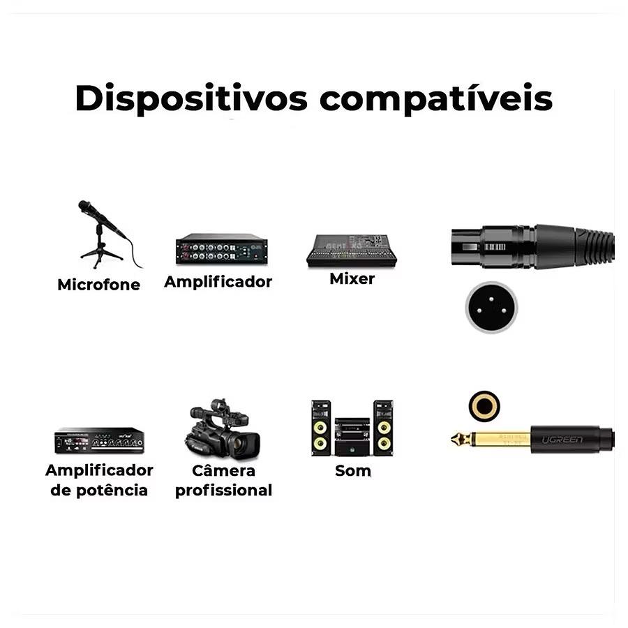Cabo de microfone profissional P10 mono para XLR fêmea 2m—Kapbom