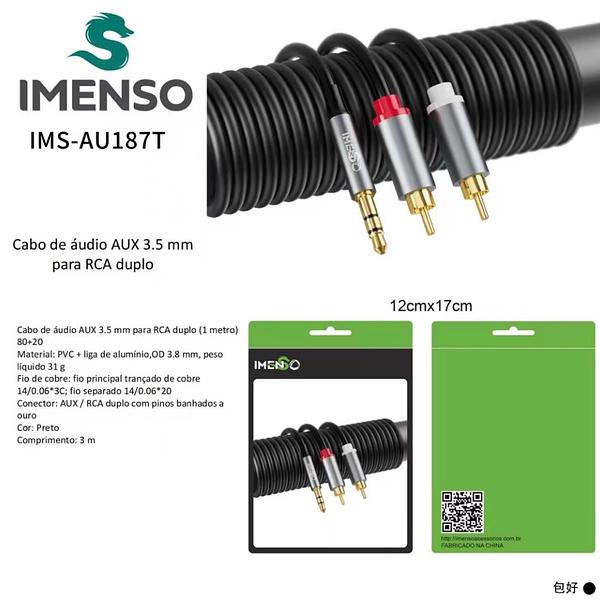 Cabo Imenso Original RCA Estéreo P2 3M IMS-AU187D