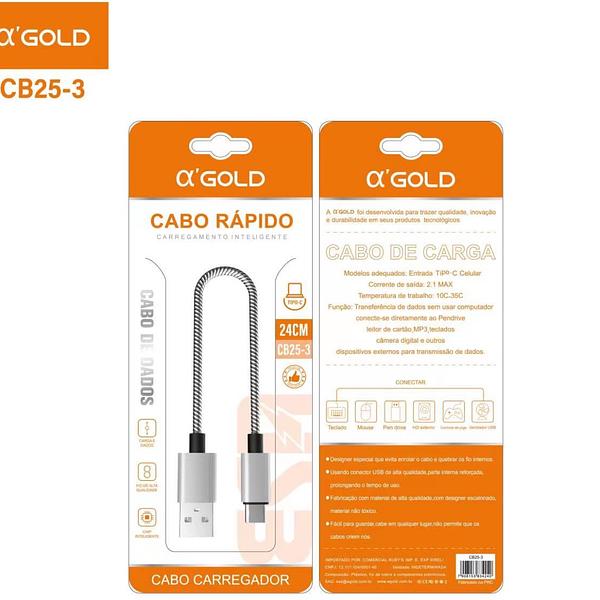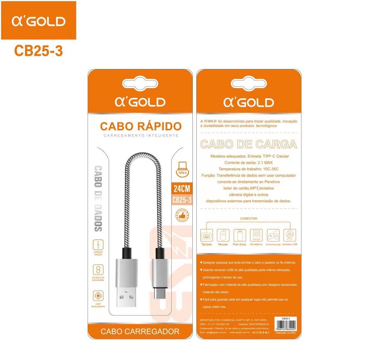 Cabo Rápido Usb Para Typec,24cm, Agold Cb25-3 - Prateado