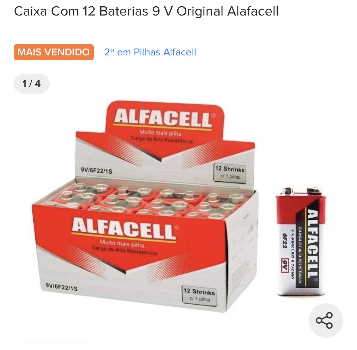 Caixa Com 12 Baterias 9 V Original Alafacell