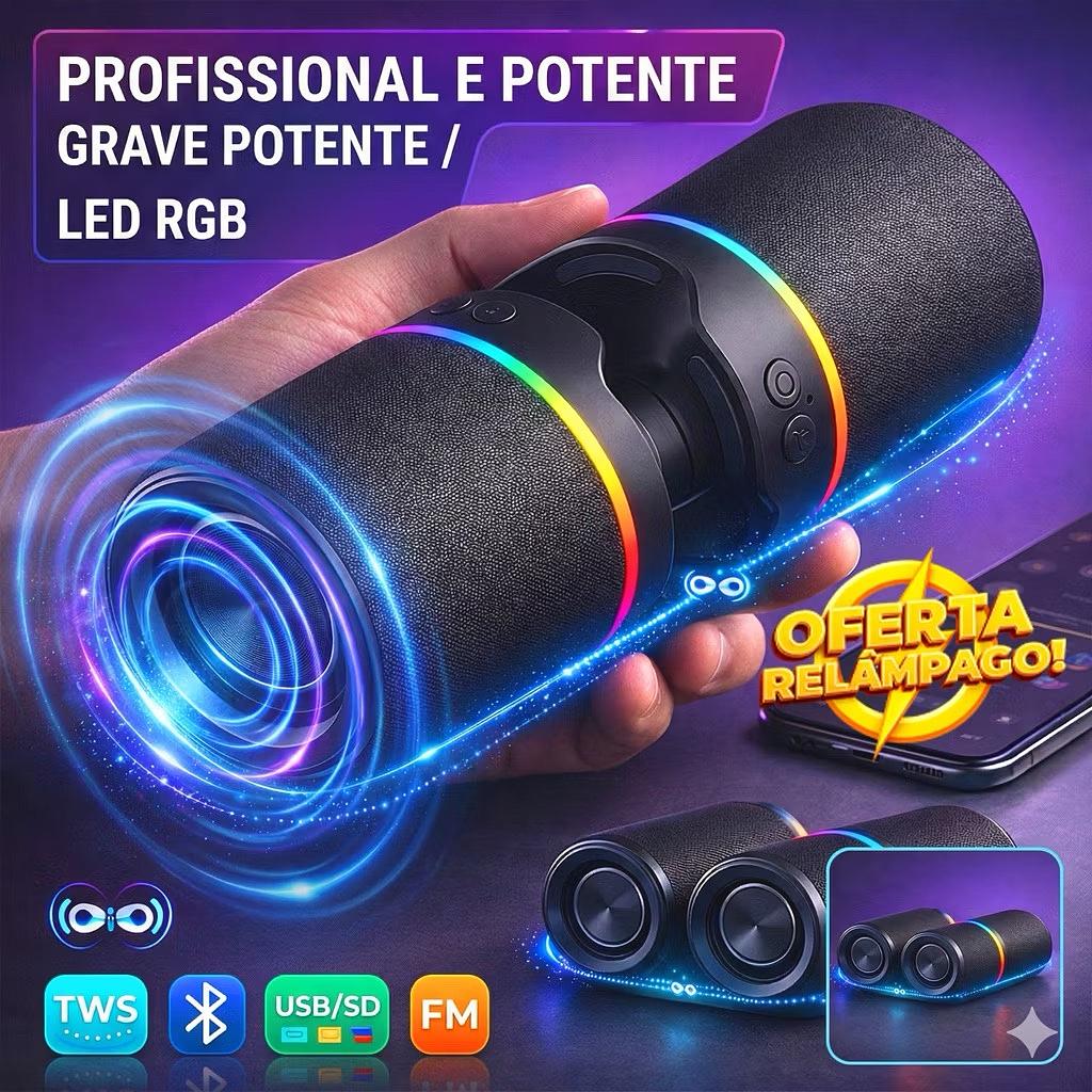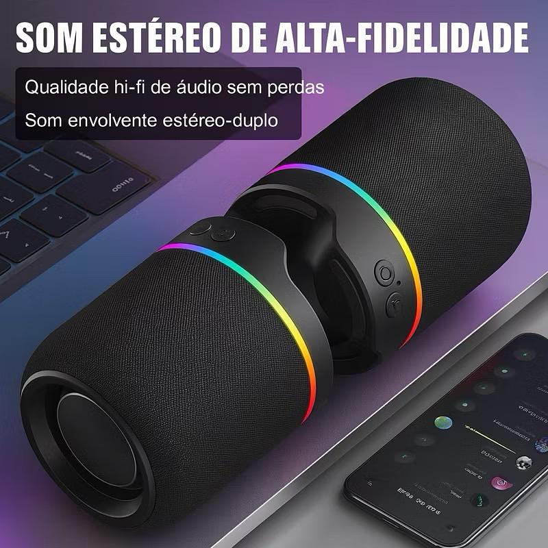 Caixa De Som Bluetooth 60w Dupla 2 Em 1 Potente LED RGB TWS Estéreo