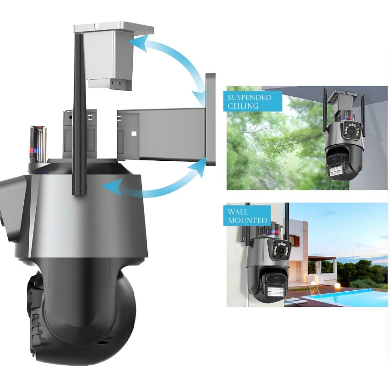 Câmera de vigilância externa Wi-Fi com lente dupla IP66 360° 4K 6MP, sirene à prova d'água