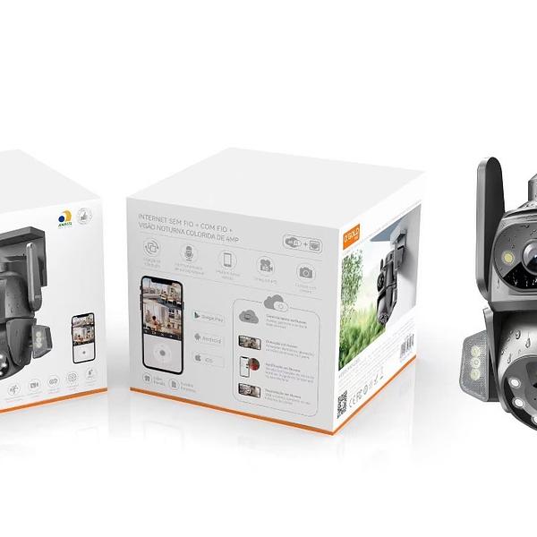 Câmera Ip Com Lente Dupla Rotação 360 Tela Dupla 4K Visão Noturna —AGOLD