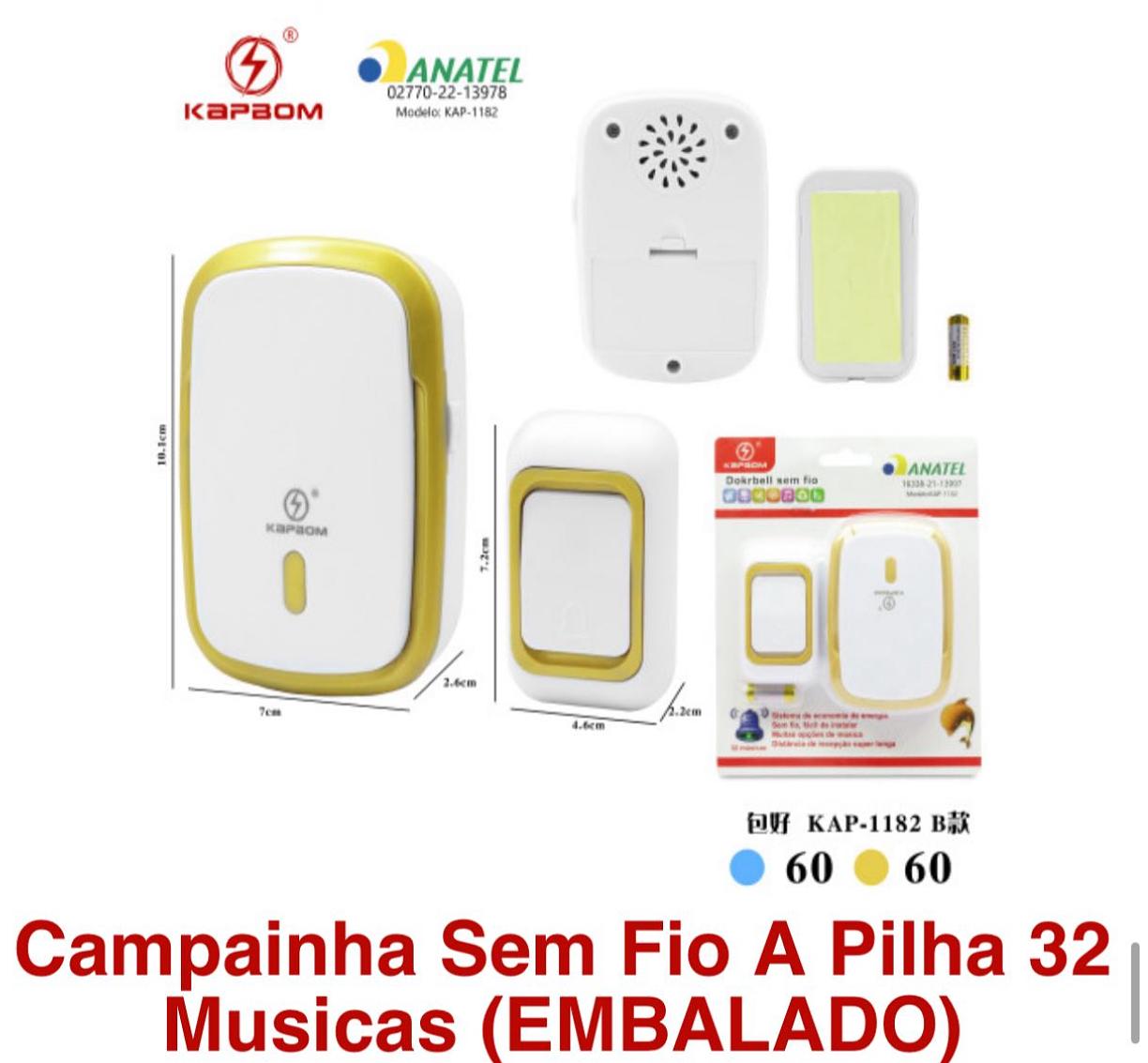 Campainha Residencial De Pilha Wireless Sem Fio 36 Toques