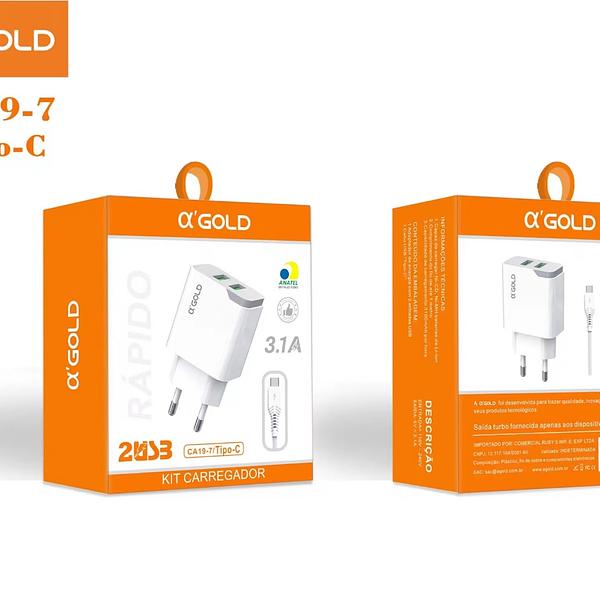carrecador celula AGOLD 3.1a 2usb para typec