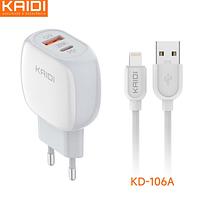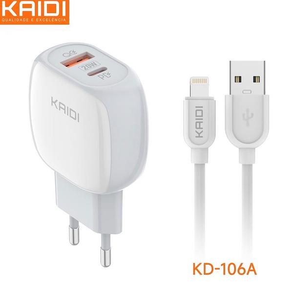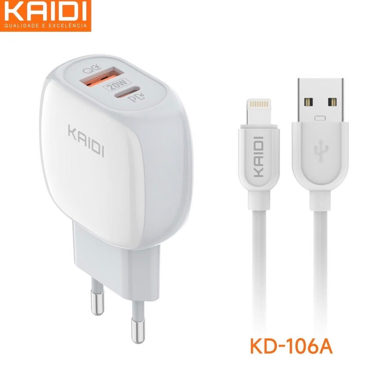 Carregador de Tomada 20W com cabo USB para iPhone Turbo PD+QC3.0 KAIDI