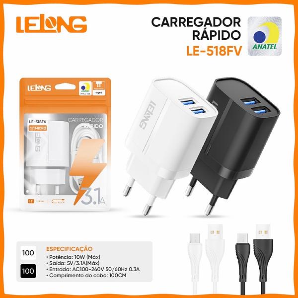 CARREGADOR DE VIAGEM SACORA 2USB 3.1A PARA V8