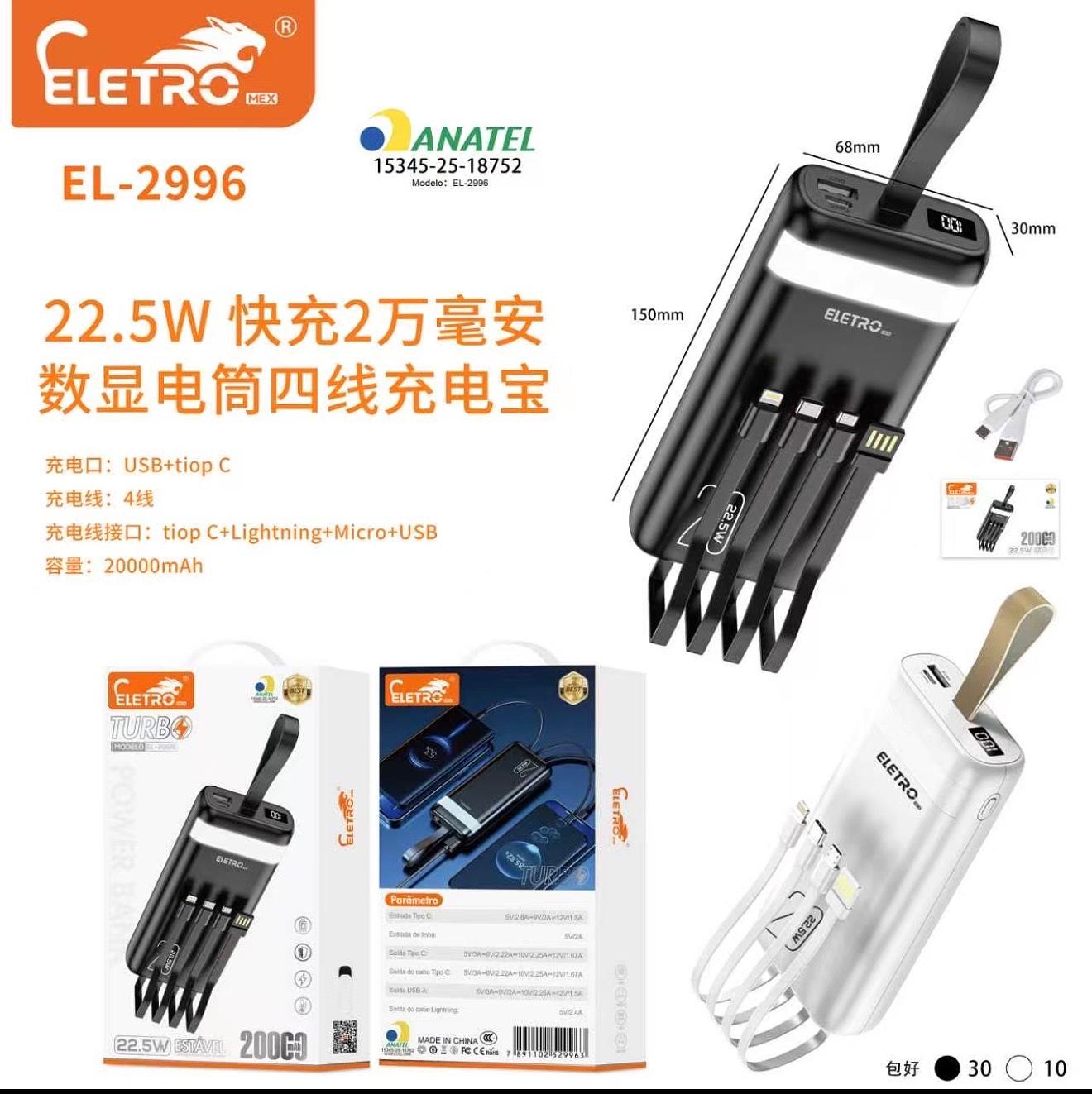 Carregador Portátil Power Bank 20000mah Para iPhone E Samsung Preto Universal