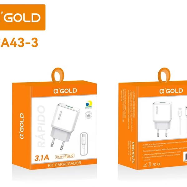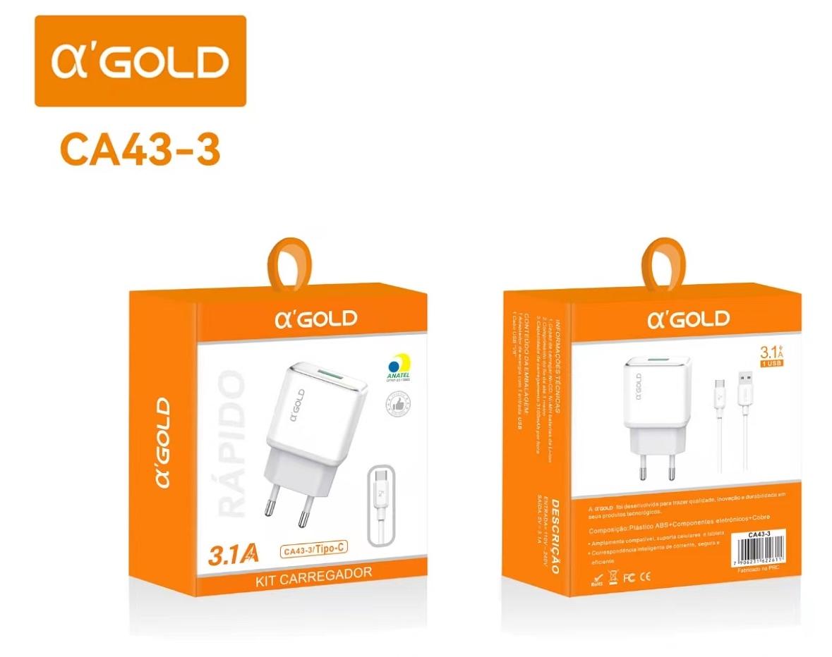 CARREGADOR RAPIDO PARA TYPEC 3.1A 1 USB AGOLD