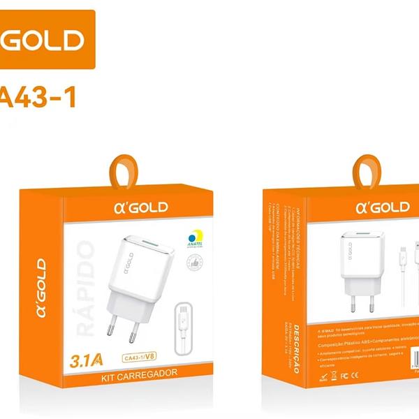 CARREGADOR RAPIDO PARA V8 3.1A 1 USB AGOLD
