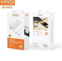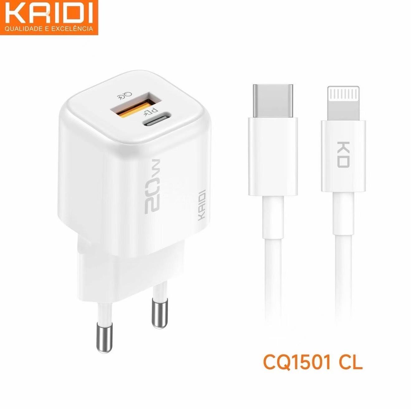Carregador Turbo 2 entradas USB e Tipo C KAIDI CQ-1501CL Cube Pro 20W GaN com Cabo Tipo-C para Lightning