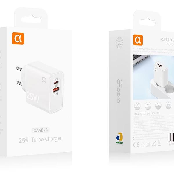 Carregador Turbo 25W Tipo-C e USB AGOLD