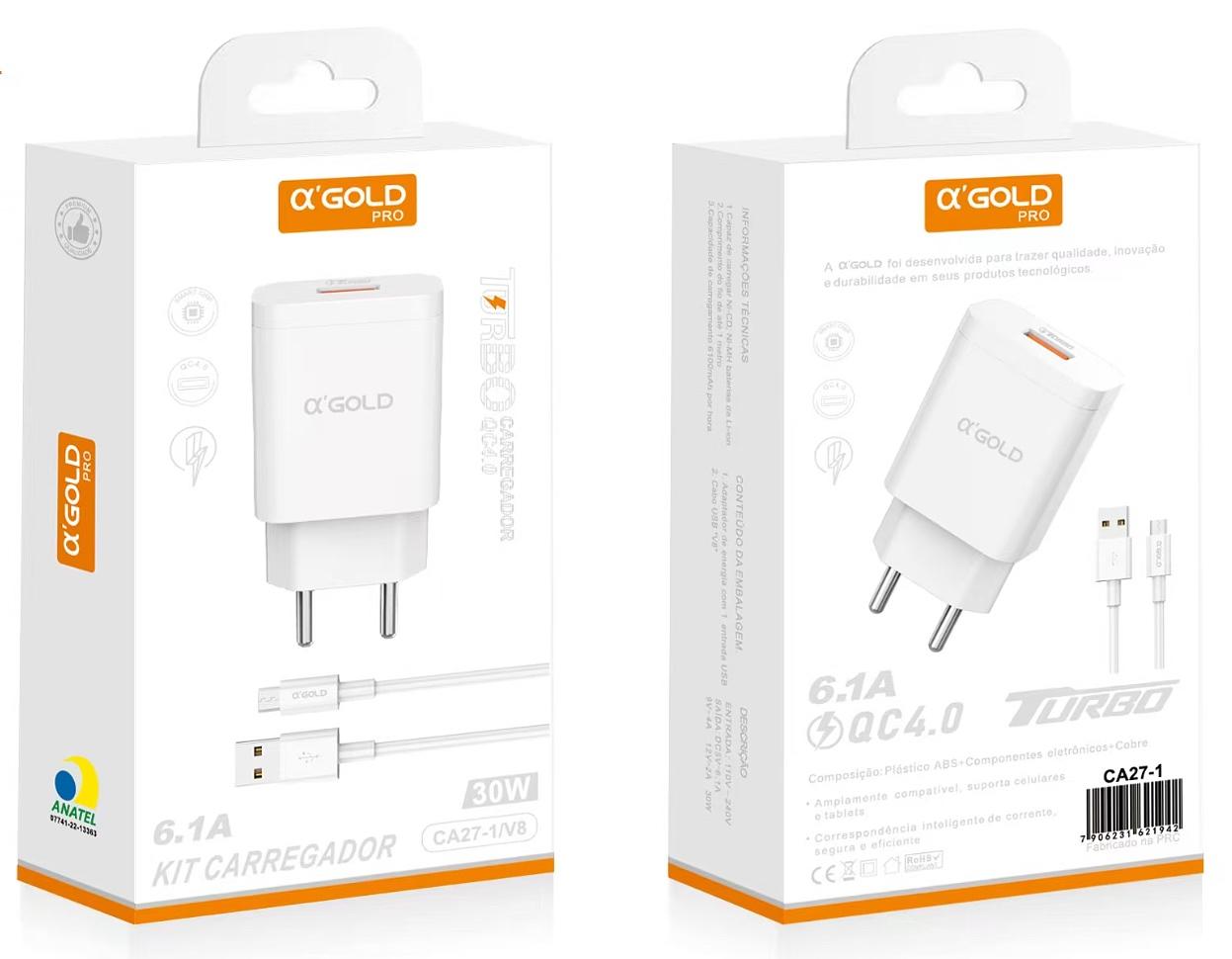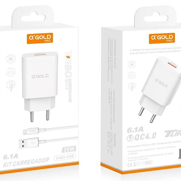 Carregador Turbo 30w 6,1a + Com Cabo Usb V8 - A'gold