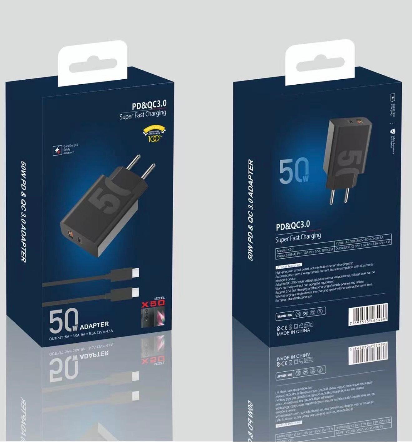 Carregador Turbo 50w Tipo C +usb Para Motorola Todos Moto G E X Z