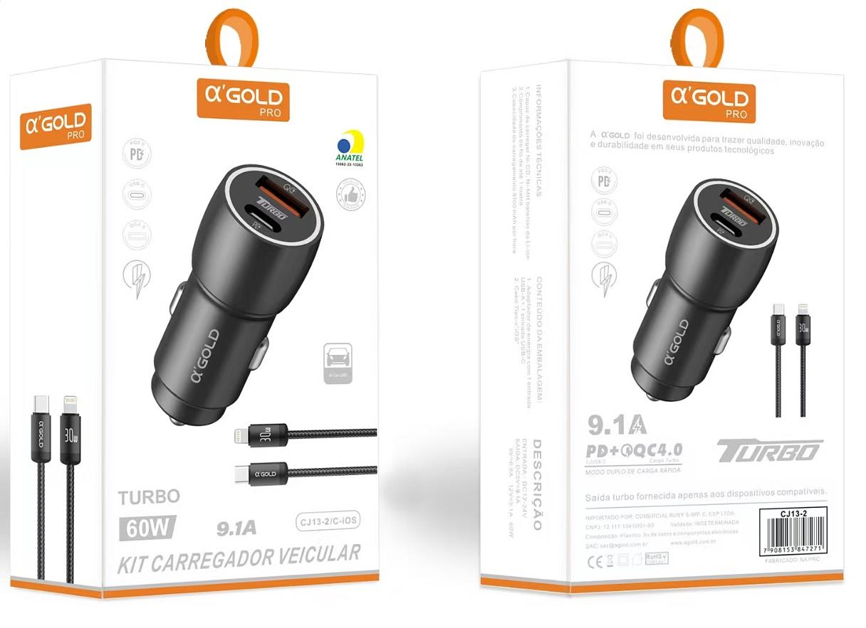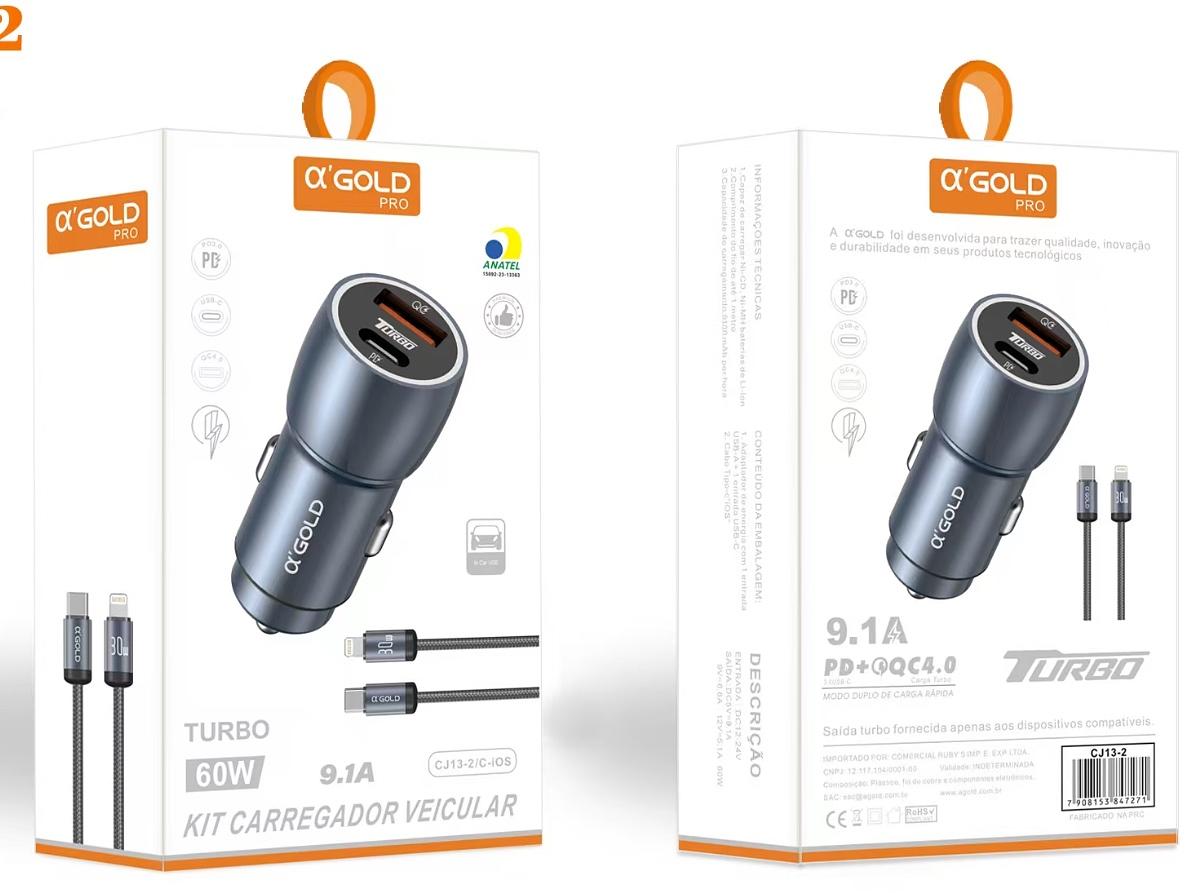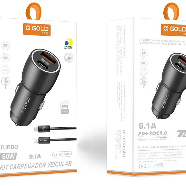 Carregador Veicular 60w Turbo Porta Dupla + Cabo Tipo C iphone Super Rapido