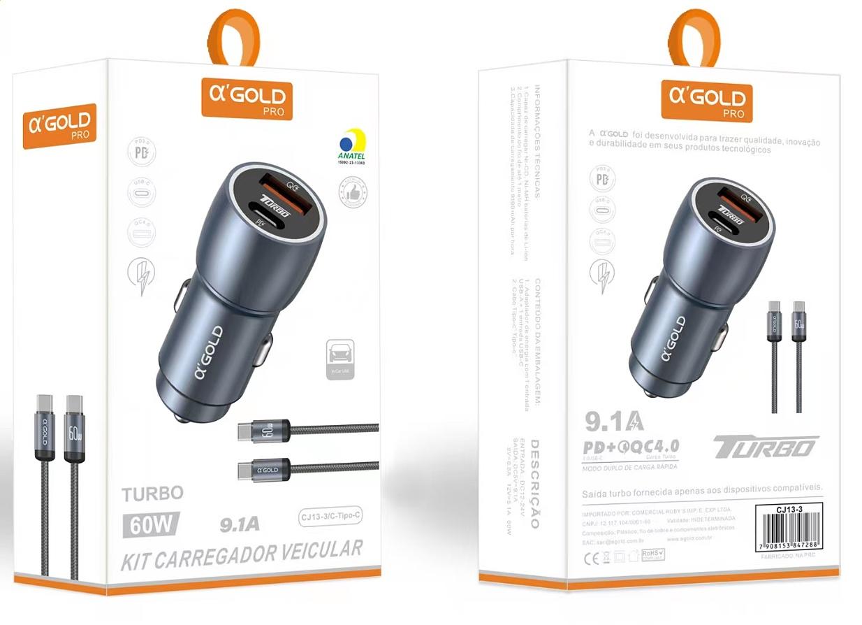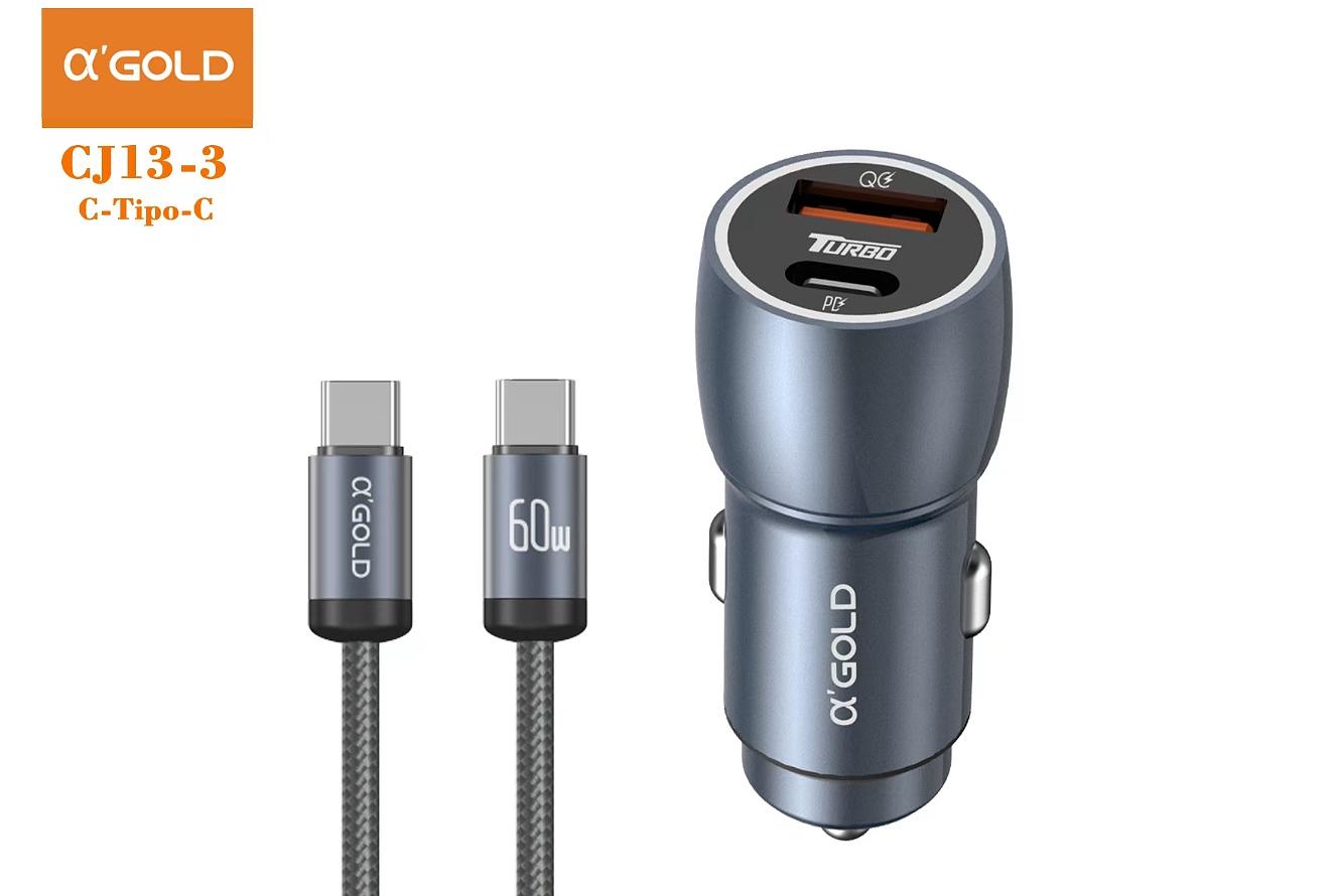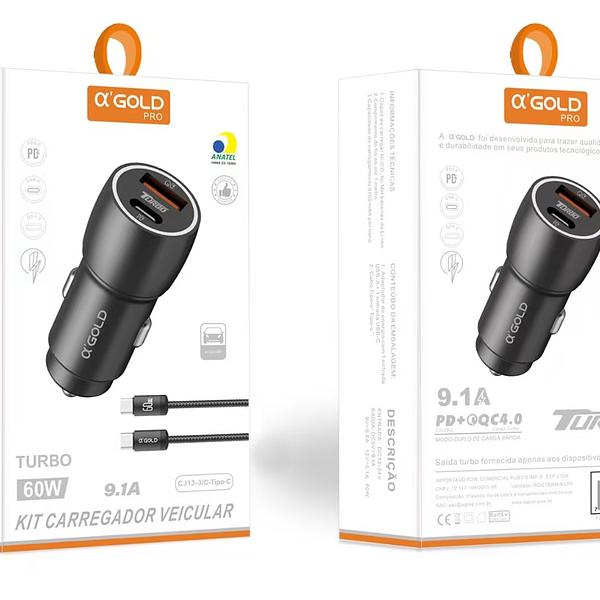Carregador Veicular 60w Turbo Porta Dupla + Cabo Tipo C Tipo C Super Rapido