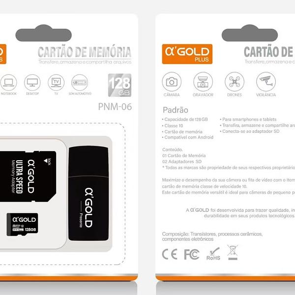 Cartão de Memória Micro Sd 128GB Original com Adaptador Sd para Celular Notebook Filmadora-AGOLD