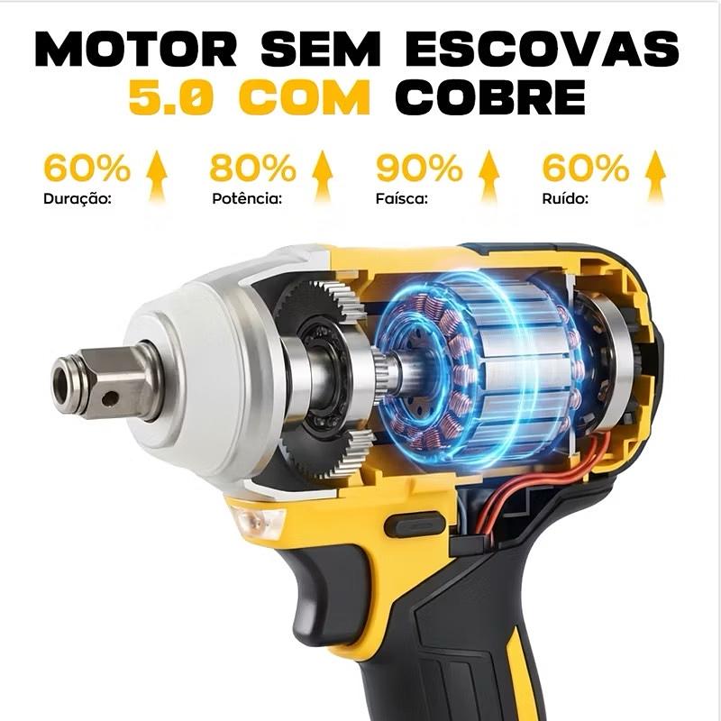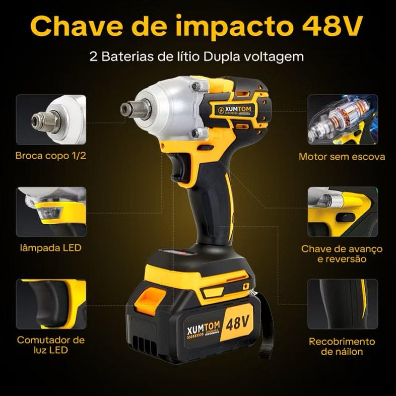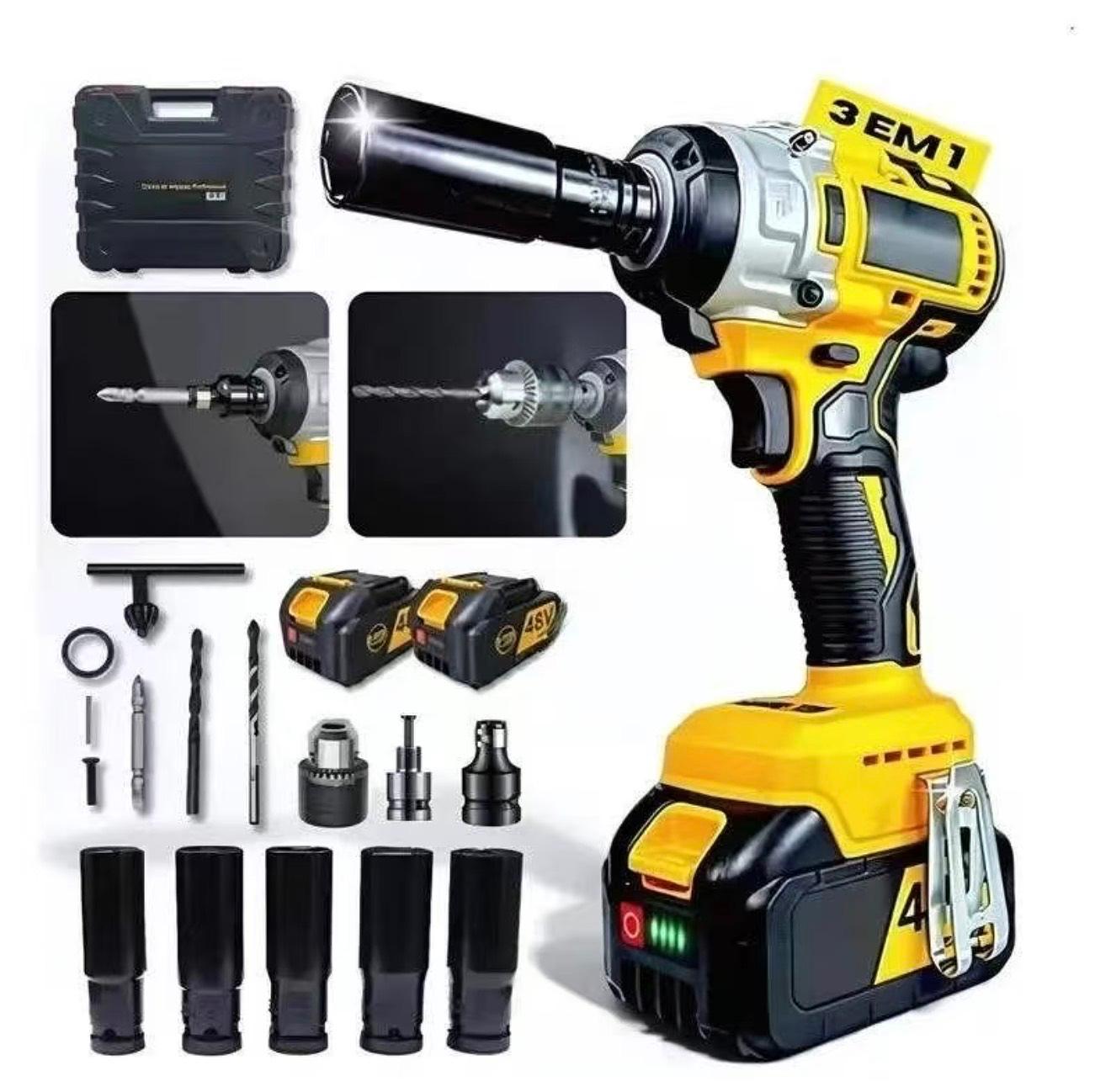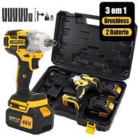 Chave de Impacto 3 em 1 elétrica sem fio Parafusadeira Furadeira Brushless 48V 2 Baterias e Maleta
