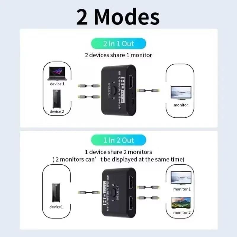 Chaveador Compativel Hdmi 2x1 E 1x2 Bi-Direcional 4k