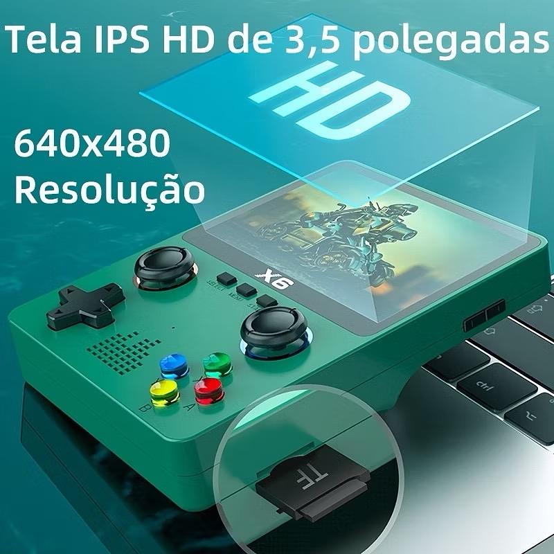 Console Portátil X6 + de 15.000 Jogos Vídeo Game 32g Linux Tela IPS 3.5 Polegadas