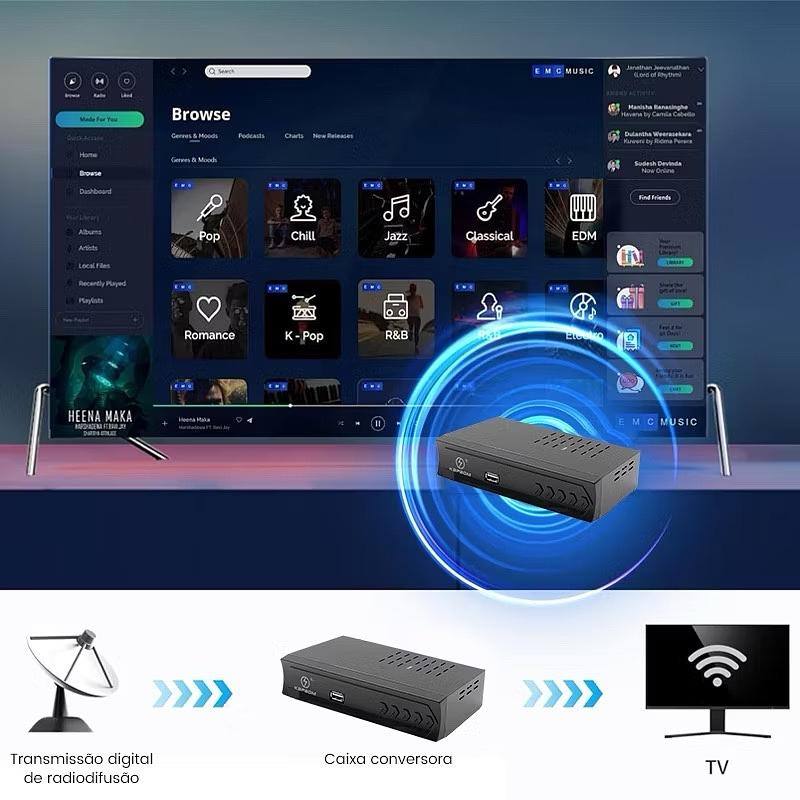 Conversor TV Digital com Gravador USB e HDMI, Full HD 1080p, Controle Remoto e Reprodução de Filmes e Música