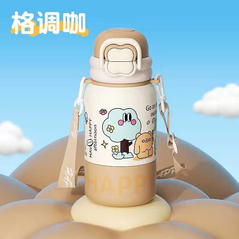 Copo térmico 450ml infantil de alto valor, alça portátil, copo de palha fofo para estudantes, um copo, três bebidas, copo de a