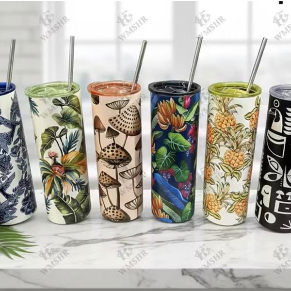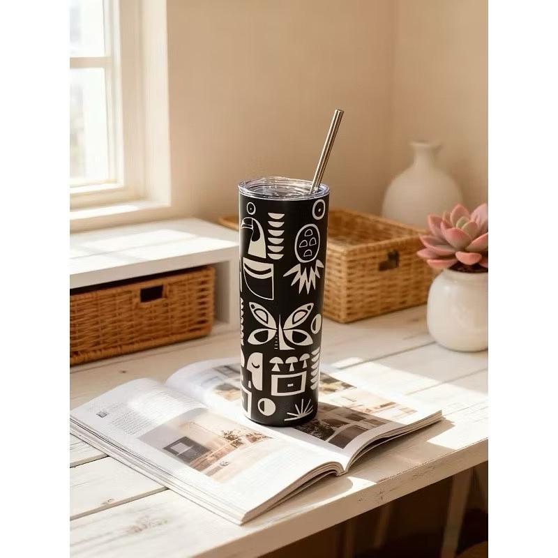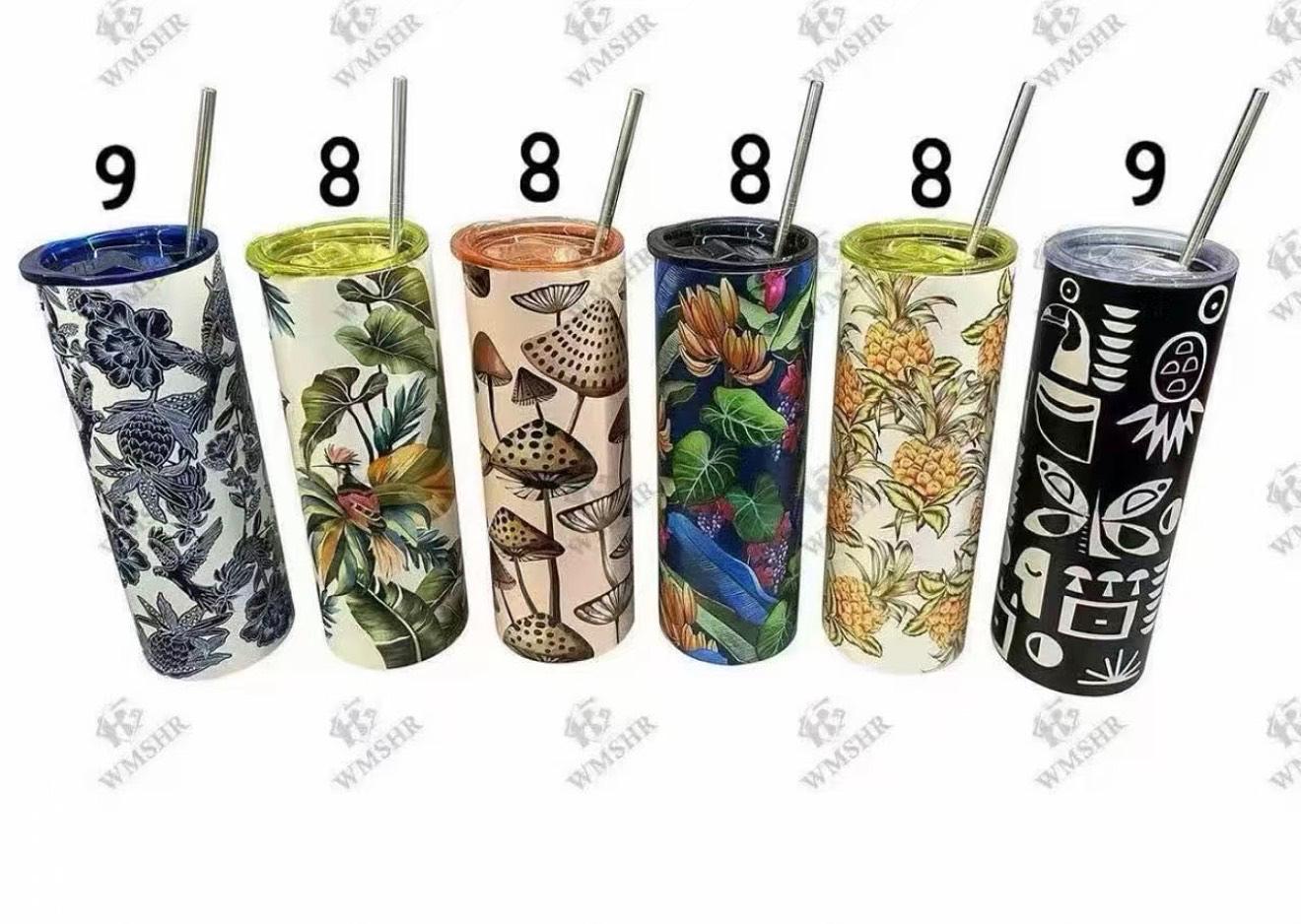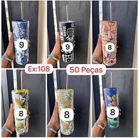 Copo Térmico floral Com Canudo de Inox 700ml Anti Vazamento