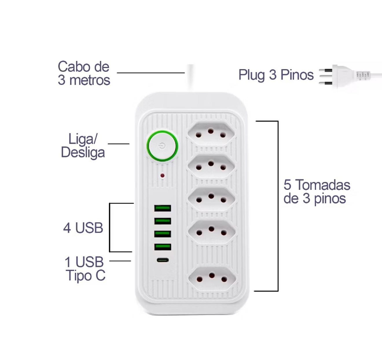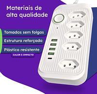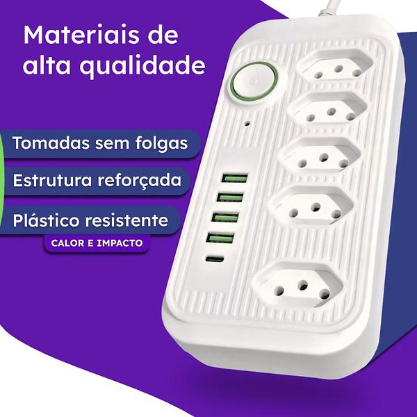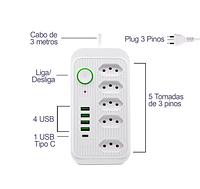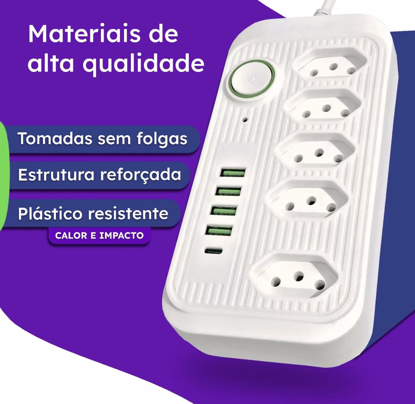 Extensão Filtro De Linha Segurança 5 Tomadas 4 Usb E Usb C Envio Imediato