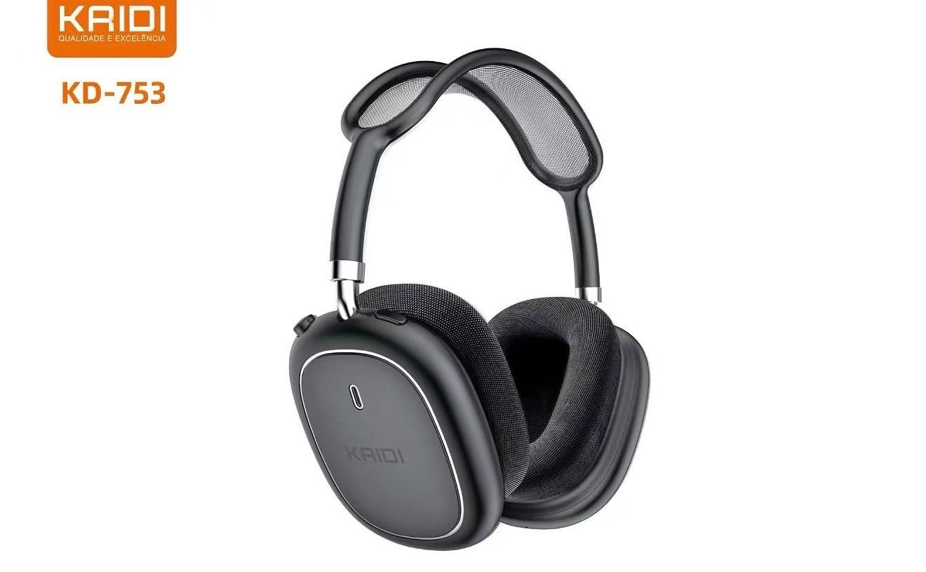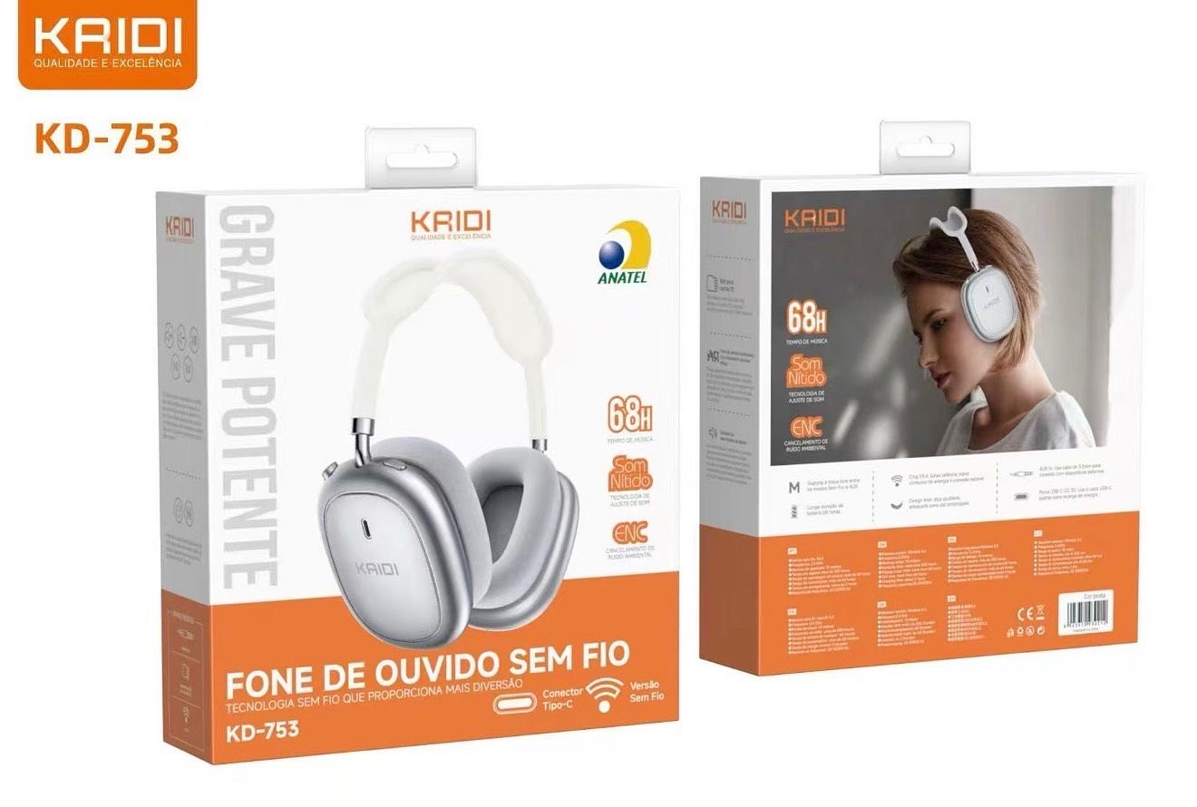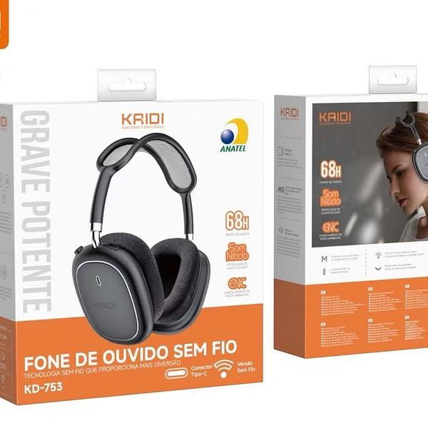 Fone Bluetooth KRIDI 68H - ENC, Som Nítido, BT 5.4, Grave Forte, Leve e Confortável, Modo Sem Fio/AUX KD-753