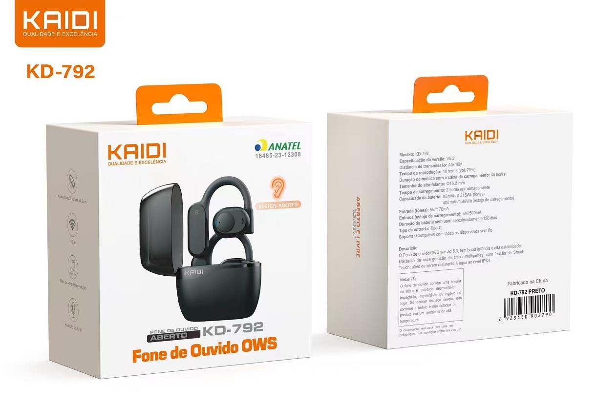 Fone de Ouvido Sem fio Bluetooth TWS Bateria de Longa Duração Kaidi KD-792 Treino Academia Correr