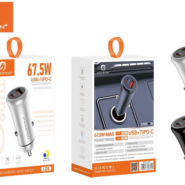Fonte Carregador carro USB + Tipo-c 67.5w Hmaston