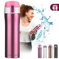 Garrafa Térmica 500ml Quente Fria Rosa Aço Inox Portátil