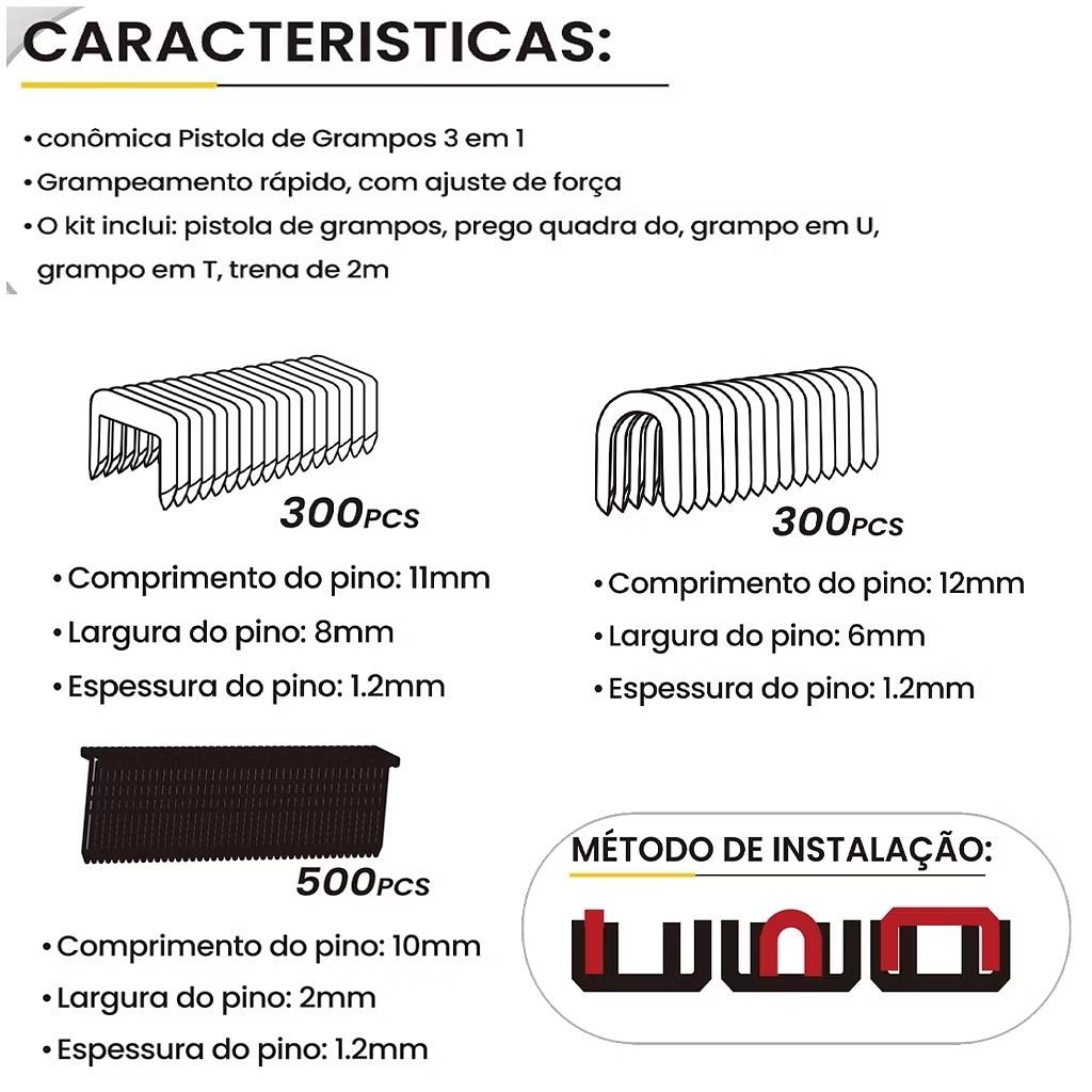 Grampeador Tapeceiro com Trena 2 Metros + 1100 Grampos e Maleta