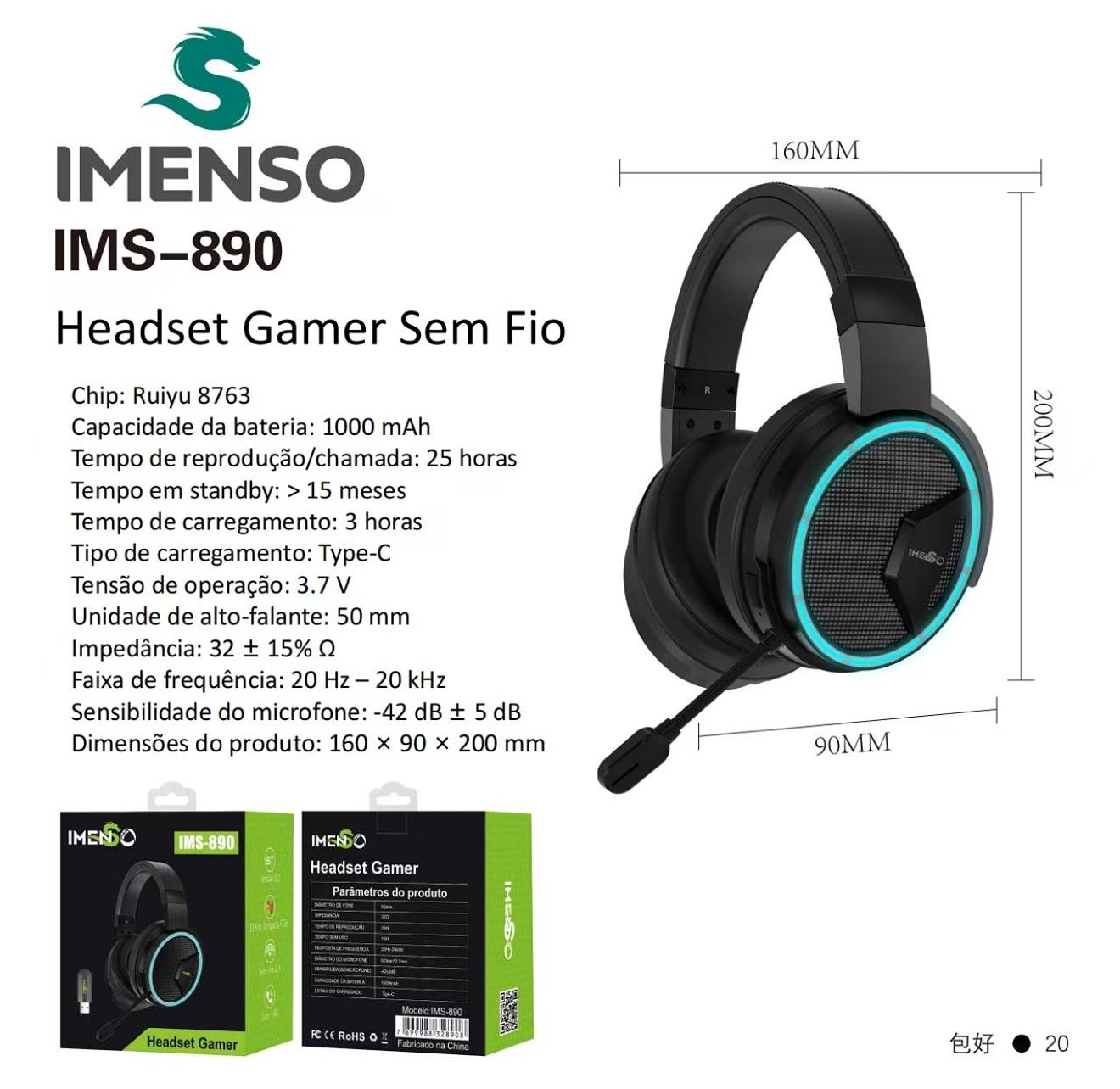 Headset Gamer Imenso Ims890 Anc Bluetooth 5.2 Rgb