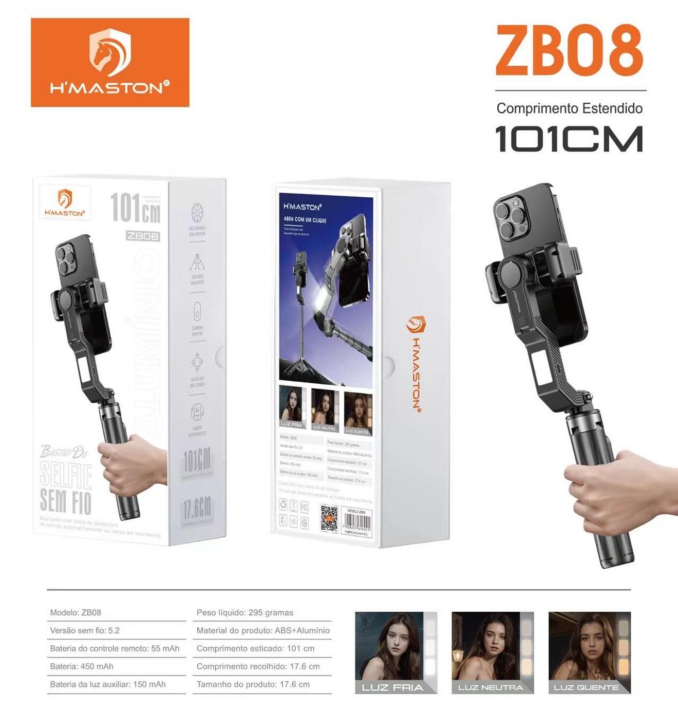 H'maston ZP-30 Tripé Bastão De Selfie Comprimento Estendido 101cm controle sem fio Bluetooth