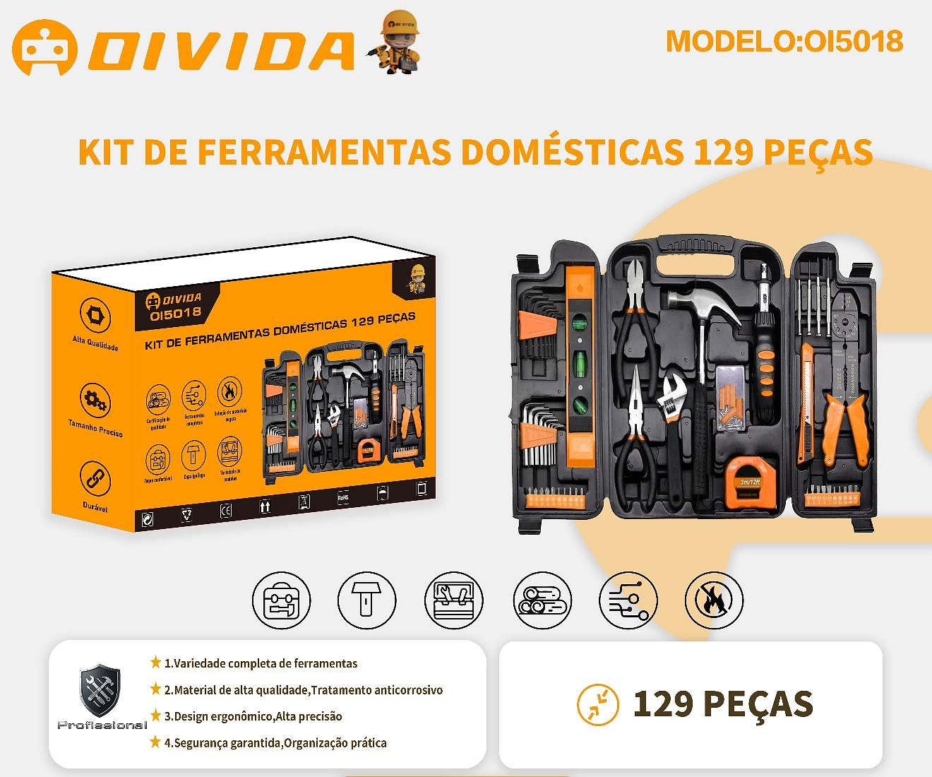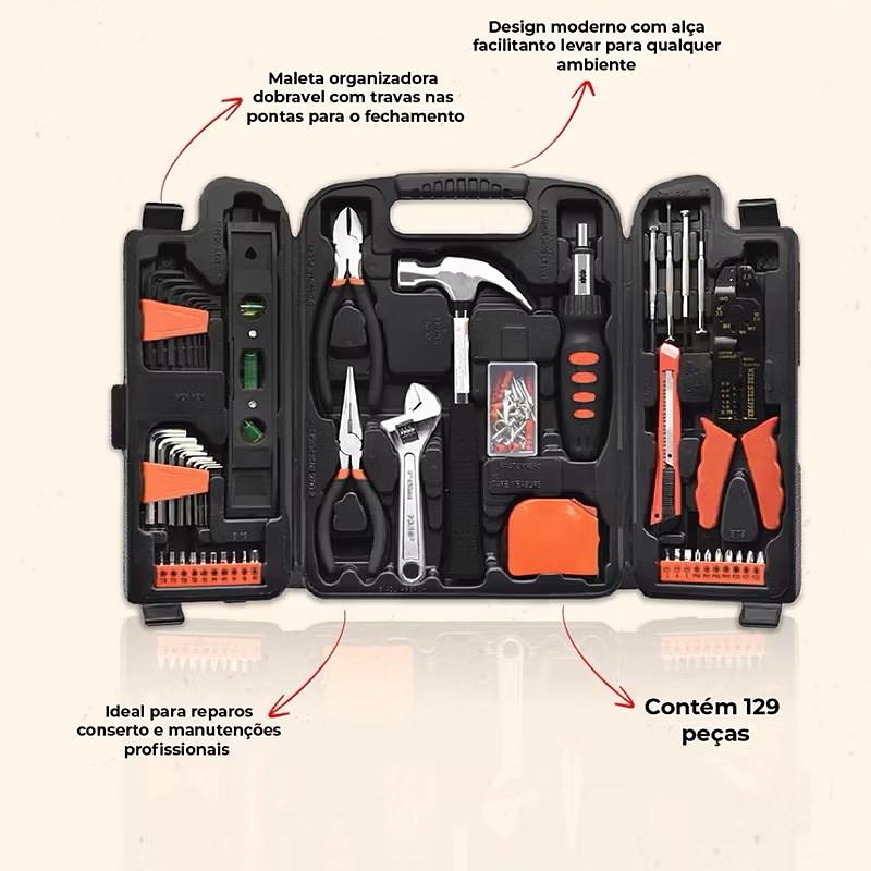 Kit 129 Peças Profissional com Maleta Portátil – Ferramentas para Reparos Domésticos e Automotivos