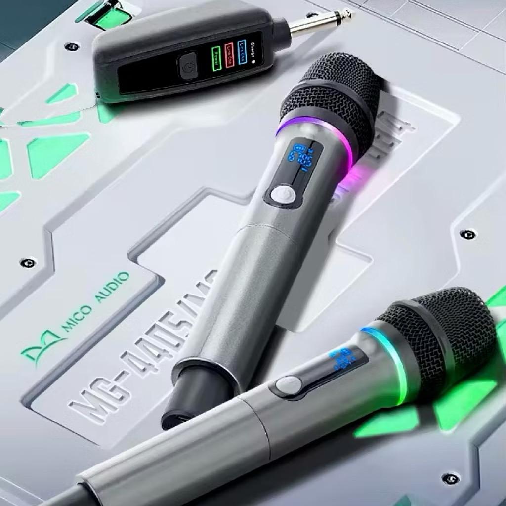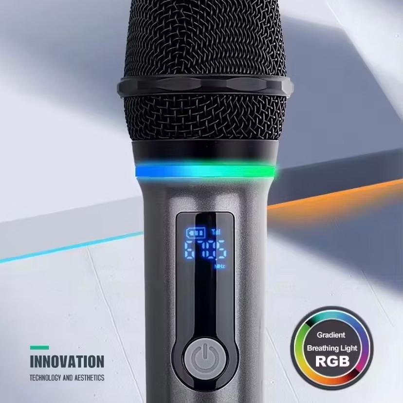 Kit 2 Microfones Dinâmico Sem Fio Profissional Recarregável Uhf para Karaokê