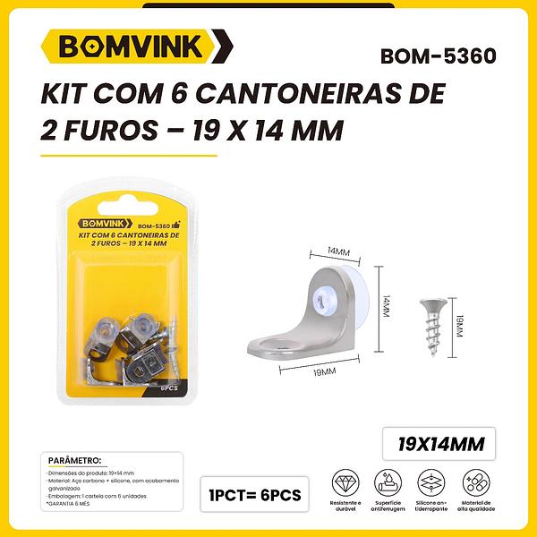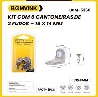 KIT COM 6 CANTONEIRAS DE2 FUROS - 19 X 14 MM