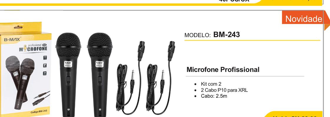 Kit Com dois Microfone Profissional • 2 Cabo P10 para XRL • Cabo: 2.5m