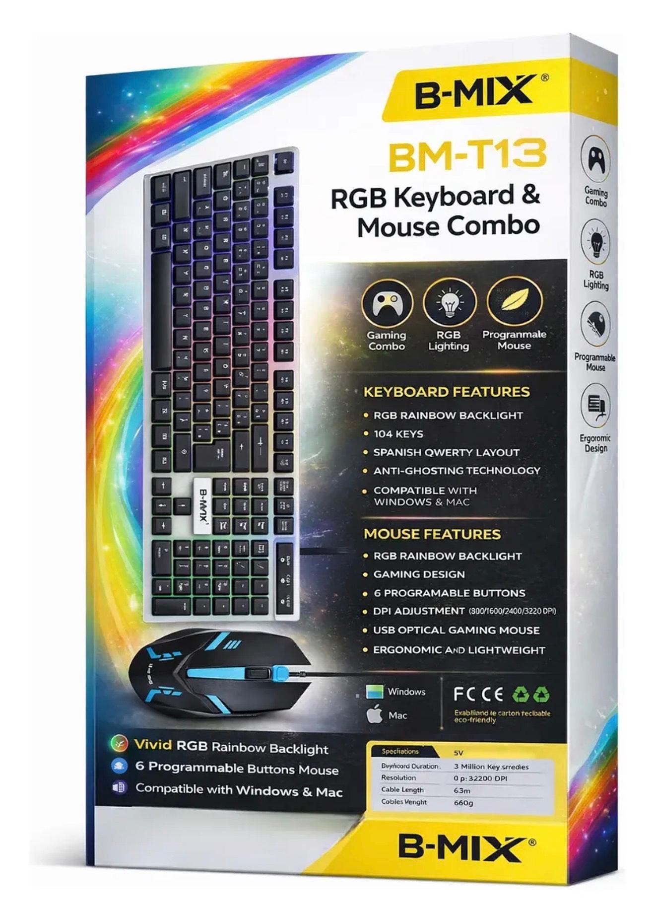 Kit Teclado E Mouse Rgb Luminoso Modo Gamer Robusto Bm-t13