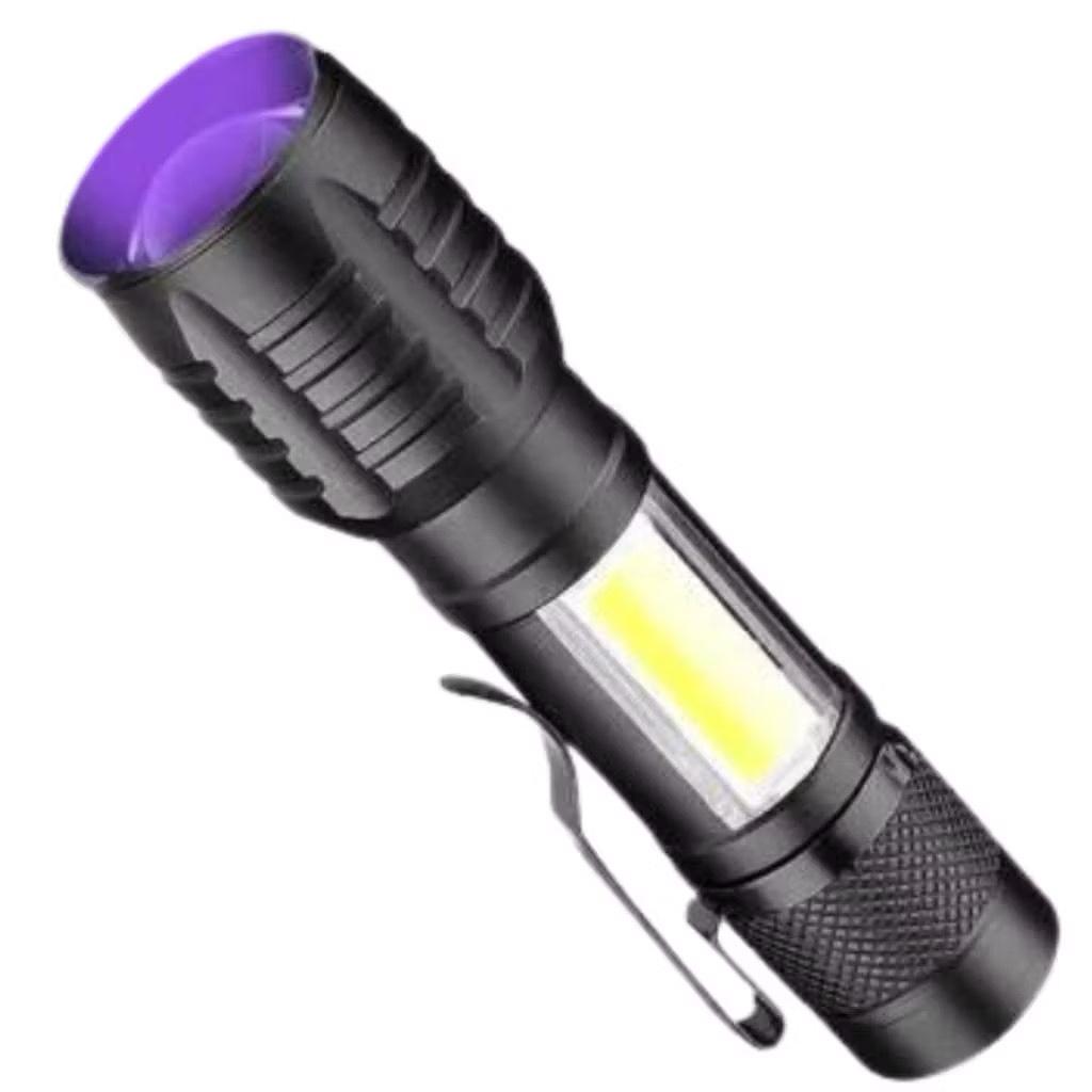 Lanterna Recarregável Mini com Luz Negra e Branca - Design Prático e Antiderrapante