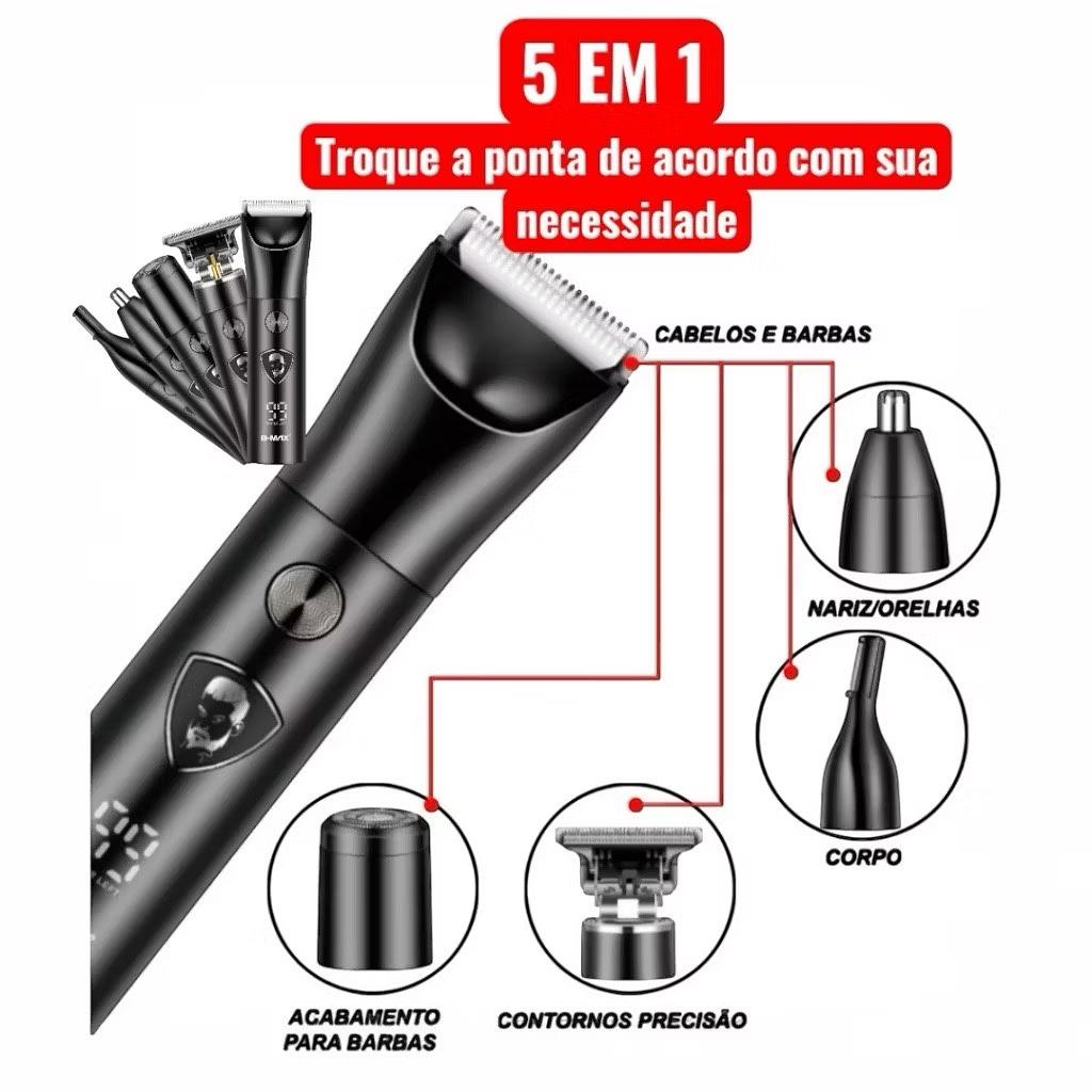 Maquina Barbeador Aparador Pelos 5 EM 1 Barba Cabelo Nariz Orelha Sobrancelha Eletrico Recarregavel—BMAX