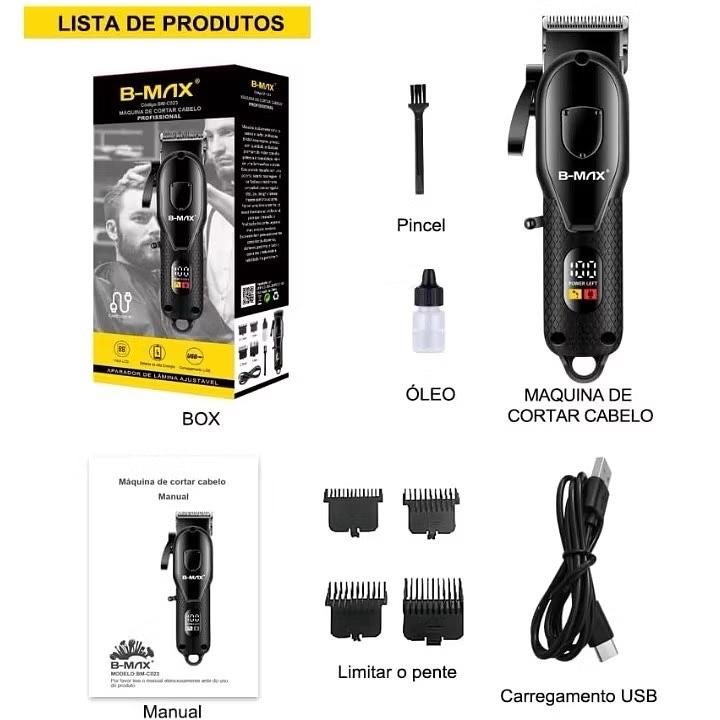 Máquina De Cortar Cabelo Cortador Barbeador Aparador Profissional Acabamento Barba 8 Peças Elétrico