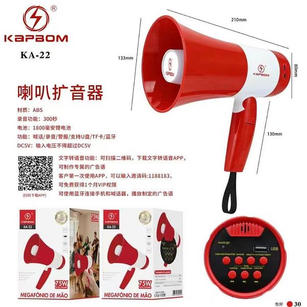 Megafone Portátil Recarregável Musica E Gravador 75w